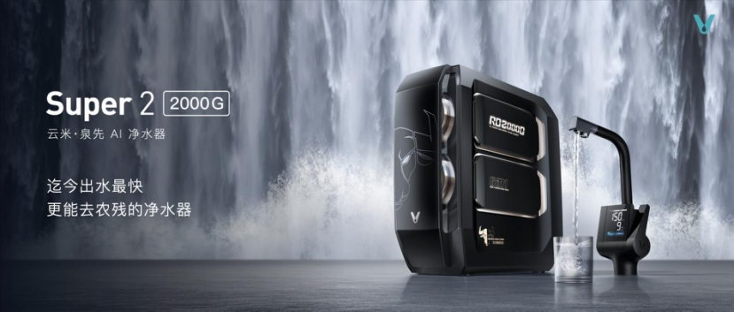 Super2 2000G云米·泉先AI净⽔器:10年安稳汹涌清水,高效去农残