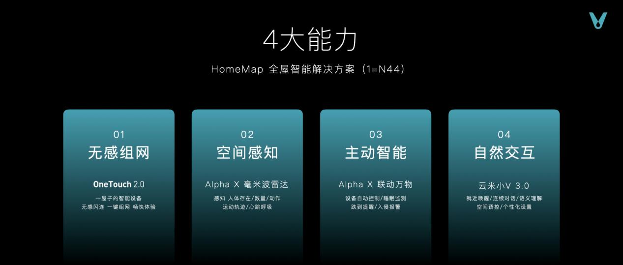 HomeMap具有的4大才能:无感组网、自动智能、空间感知、天然交互,让家成为一个全体,让智能家居设备具有“考虑”才能。