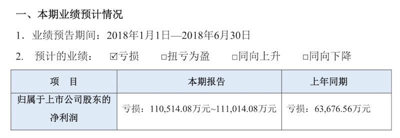乐视网公告:上半年亏损 11.05 亿至 11.1 亿元,存在暂停上市风险