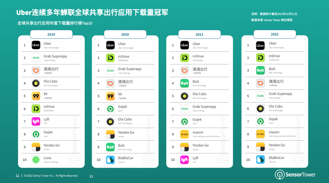 Uber连任全球同享出行运用下载量冠军